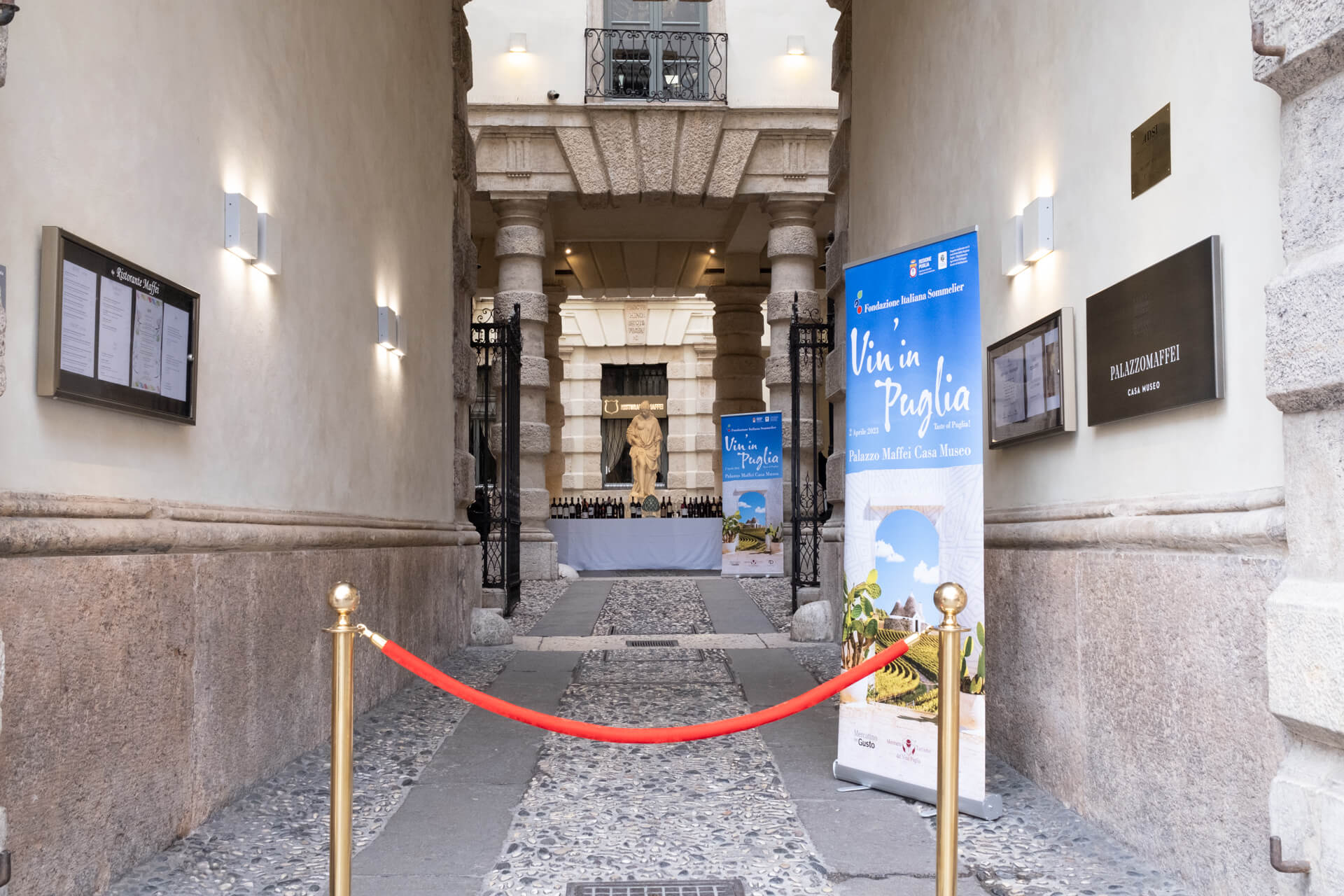 Abbiamo trasformato la suggestiva cornice della Casa Museo Palazzo Maffei, nel cuore di Verona, in uno spazio immersivo di racconto e degustazione, attraverso una grande degustazione aperta al pubblico e con il “Salotto di Vin’in Puglia”, un talk riservato agli addetti ai lavori per riflettere insieme alle istituzioni sul presente e il futuro del comparto vitivinicolo pugliese.